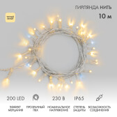 Гирлянда светодиодная Нить 10м 200 LED ТЕПЛЫЙ БЕЛЫЙ прозрачный ПВХ IP65 постоянное свечение 230В соединяется нужен блок 303-500-1 NEON-NIGHT