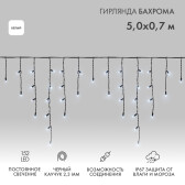 Гирлянда светодиодная Баxрома (Айсикл) 5x0,7м 152 LED БЕЛЫЙ черный каучук 2,3мм IP67 постоянное свечение 230В нужен блок 315-000 NEON-NIGHT