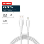 Кабель USB-A - Lightning, 2,4А, 1м, в белой нейлоновой оплетке REXANT