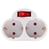 Разветвитель, 2 гнезда, 16A, с/з, IP20, пластик, белый, с защитными шторк., с выкл.