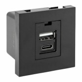 Розетка USB A+C, 2.1А, 2 гнезда, без индикатора, черная, матовая EKF