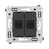 Компьютерная розетка RJ-45 без шторки в стену, кат.6А двойная, "Avanti", "Черный матовый"