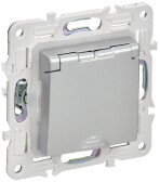 Розетка 1-местная с заземлением с защитными шторками и крышкой 16А IP44 SK-R11S серебряный SKANDY