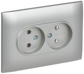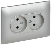 Розетка 2-местная без заземления с защитными шторками 10А в сборе SK-R09S серебряный SKANDY