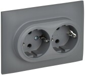 Розетка 2-местная с заземлением с защитными шторками 16А в сборе SK-R07Gr серый SKANDY