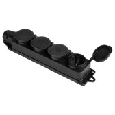 Колодка розеточная, 4 розетки, 16А, с/з, IP44, каучук, чёрная, с защитными крышками, MultiSet