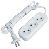 Удлинитель,3розетки, длина 3 м, 10А, ПВС 2х1 мм?, б/з, IP20, пластик, белый, U-3-3m