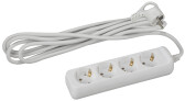 Удлинитель, 4розетки, длина 3 м, 16А, ПВС 3х1 мм², с/з, IP20, пластик, белый, 16АU-4e-3m